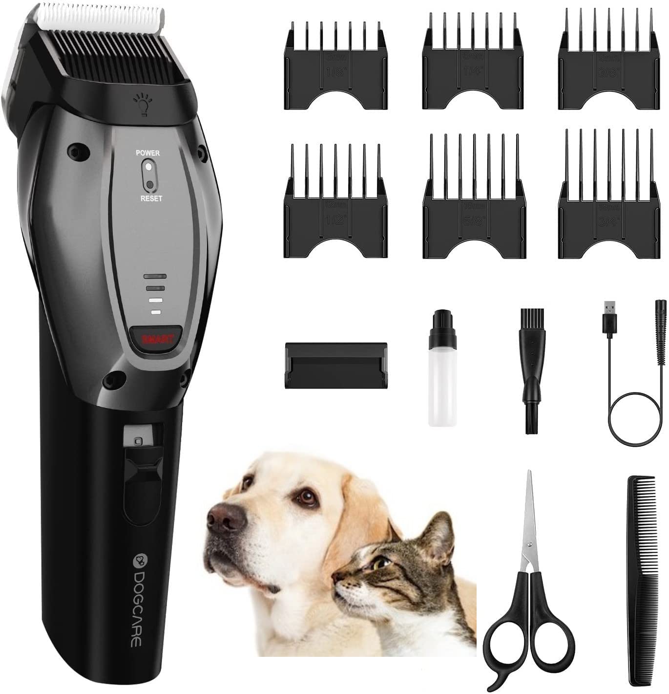 Amazon Com Dog Care Dog Grooming Clippers Kit Smart 3 Mode Heavy Duty Professional Dog Hair Clippers For Thick Coats Cordless Rechargeable Hair Trimmer For Dog Cat Pet Low Noise With Auxiliary Light Gray